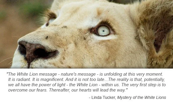 The indigenous people of South Africa prophesied that the White Lions would return to Earth to usher in a new evolutionary time on the planet. This time would mean a return to balance in our Earth's ecosystem where people would be in a relationship with nature's laws. During this time, we would remember our sacred contract with the Earth and make the changes necessary to establish peace on earth.